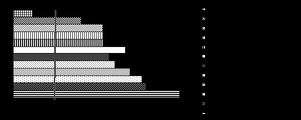 Как и общий коэффициент показатели первичного выхода на инвалидность по отдельным причинам на 10 тысяч человек населения в Мурманской области практически по всем причинам ниже или находятся на уровне среднероссийских. Исключение составляет показатель первичного выхода на инвалидность в связи с профессиональными заболеваниями, который продолжает расти и за 1996 год более чем в 4 раза выше, чем в среднем по России.