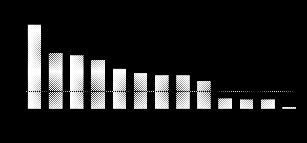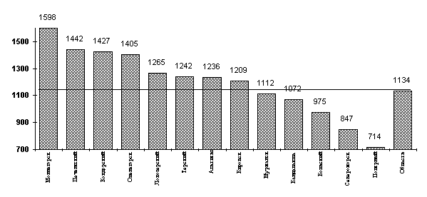 Сравнительные данные числа дней нетрудоспособности на 100 человек трудоспособного возраста в некоторых городах и районах в 1997 году (средний уровень по Мурманской области принят за 1.0)